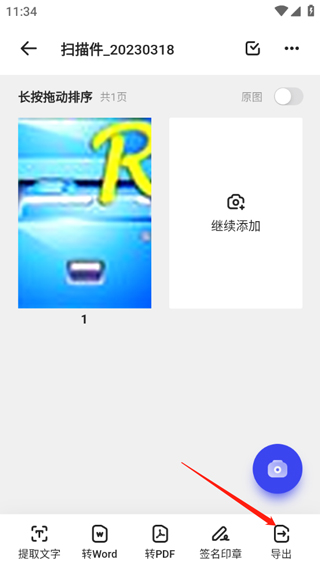 2、进入扫描界面后,切换到扫描文件界面,并对文件进行拍照扫描。