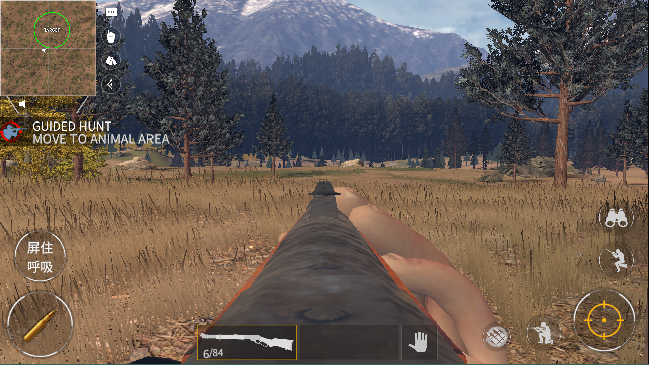 最后呢看到有动物出现的时候就屏住呼吸,点击左下角的子弹就可以射击出去了
