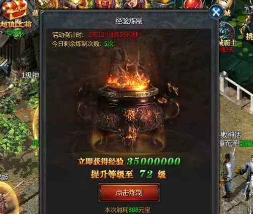 降妖除魔6次时基本60级了。想抢第一帮会和6转的这时马上点击经验炼制