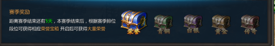 都是相同的宝箱奖励,段位越高,奖励越好。奖励发送是。一周为一个赛季,赛季结束后发送,根据段位发送奖励