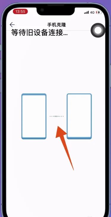 用旧手机扫描新手机上出现的二维码,连接新旧手机。