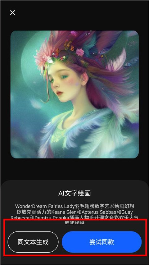通过使用万兴爱画,输入自己想要的关键词,选择图片比例和艺术风格之后,您就可以在30秒内获得由AI自动生成的绘画作品。