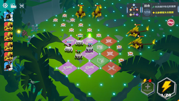 紫色地格是参赛者的专属地格,当参赛者走到这个地格上时,会对范围内的目标施放专属技能。