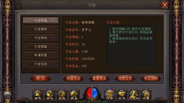 玩家何其多,但是总有一个组织是你愿意用生命去捍卫的,那个组织就是行会!玩家自加入行会,便可以跟行会的小伙伴一起烧杀抢掠(当然我们是正义的一方,杀的都是坏boss),有个强大的后援团,咱也算上面有人的人,谁还敢肆意的挑衅就叫他放学别走,我先回去叫人!