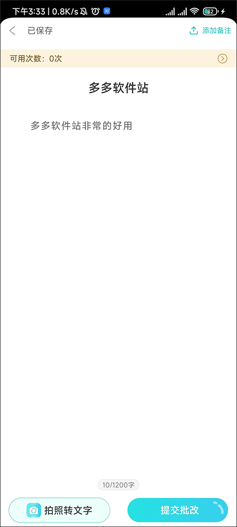 我们可以拍照直接转文本,也可以将写好的作文直接一键复制粘贴到app上,写好后点击提交批改。