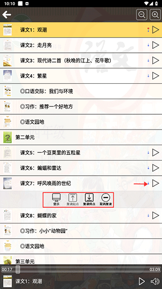 2、点击开始播放,就可以播放课文,第一篇则是观潮