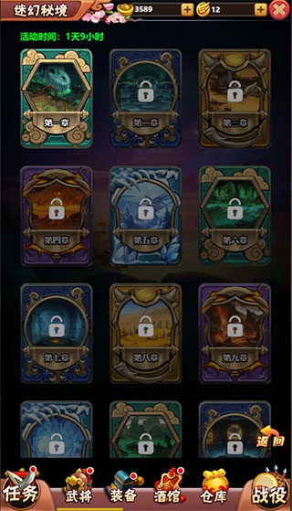 -进入章节后,我们来到了一个秘境世界,里面有各种怪物、事件和宝箱,有些特殊事件需要指定的道具卡才能触发,秘境中可获得大量装备培养材料和装备图纸。章节越高,掉落的装备图纸的阶数也越高。