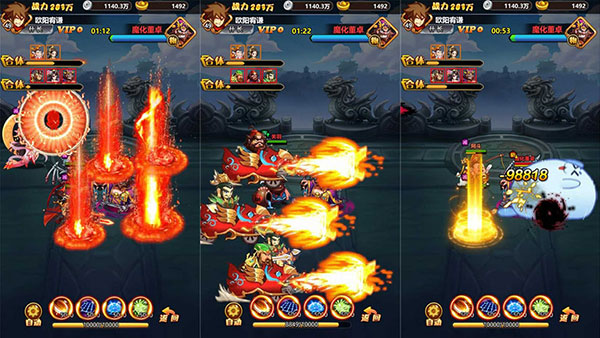 3、收集多种武将卡牌,拥有丰富的武将搭配阵容组合,数十种合体大招组合;