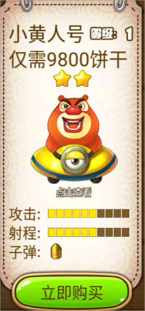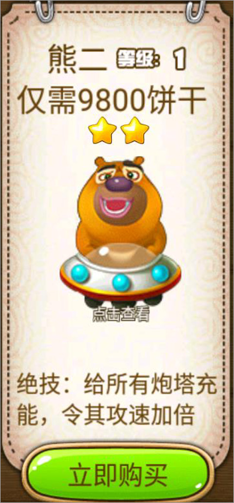 【三星条件】一星:通关即可。二星:100秒内消灭11个小钱袋,禁止建造小雨伞。三星:满血通关,由熊大消灭6个怪物,最多只能建造8个炮塔。