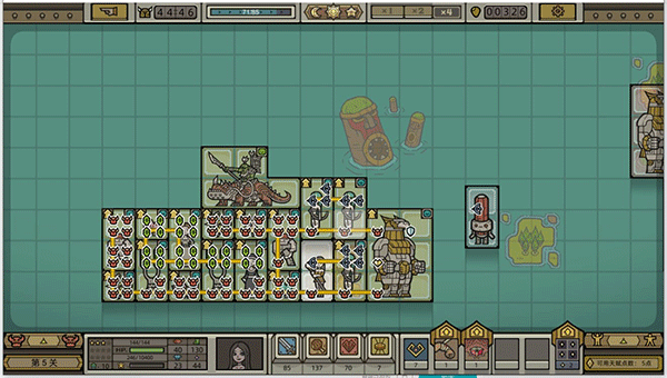 第四关实在没有好用的单位拿了,然后我的鹰人魔像自带心符文又给我堵死了,只能这样招募两个弓箭手,等会分两个远程符文组(攻击符文是一定要贯通的)。