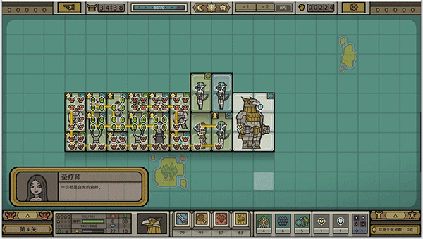 第一章噩梦难度,最容易通关的仍然是圣疗师,全体提高生命值大大提高容错率。大厨也不错,但是噩梦难度资源非常吃紧,不一定有多余的肉来养单位。经典夹心开局,我选择毒叶怪放在下面,因为他相对其他单位,HP会更高一些,这个位置是符文链接结点,一定不能死。