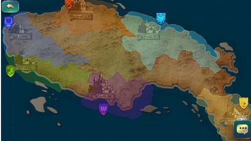 在诺尔岛上,共有6个王国:最西方深蓝色代表着银翼之羽——桑德瑞王国,在南方与其接壤的绿色代表着马背上的国家——夏亚王国,北方中部有着橙红色的铁与石之国——葛雷王国,正南方是紫色神秘沼泽——莉维塔王国,东南方有着黄金之都——达姆斯王国,东北方的天蓝色代表着风帆之国——利姆萨王国。阵营就是以国家来划分的,不同的国家就是不同的阵营,国家以鲜明的色彩区分,因此大家都习惯用颜色来代指国家和阵营。