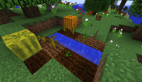 不过,在创建世界的时候,有可能会生成天然的西瓜与南瓜,我们可以利用这些天然生成的瓜来为我们的作物取种。