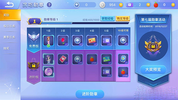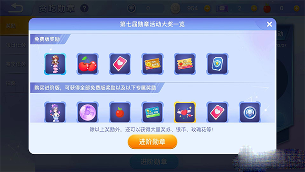 4、贪吃勋章分为免费版和进阶版,进阶版能够获得的苹果更多,不过是需要花费RMB才能成为进阶版哦!