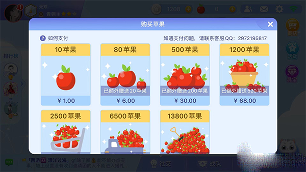 6、充值。这是最直接也是最省事的方法了,一次性充值的越多能够得到的苹果也越多,不过在这里小编建议大家一定要控制住自己的手哦!要学会合理消费!!