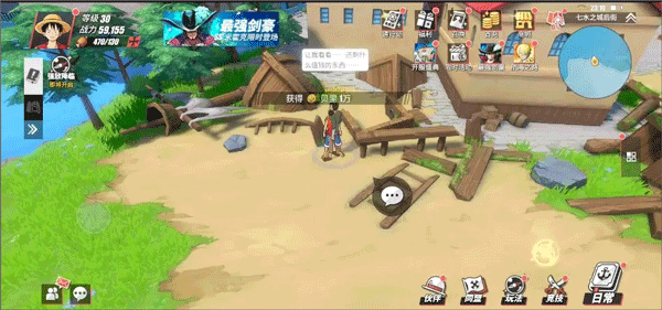之后我们往“废船岛”区域移动,在左上角区域有一个NPC“拾荒者”,我们与它对话,并在对话结束后可以获得1万贝里。