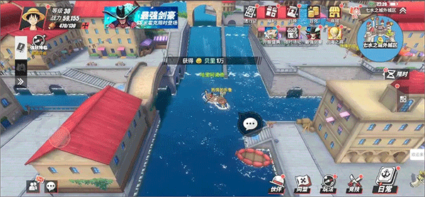 对话完“得意的少女”,我们接着往上方码头走。穿过一个小石梯,在这里会有一个NPC“小船定制商”,我们与它对话,并在对话结束后获得1万贝里。