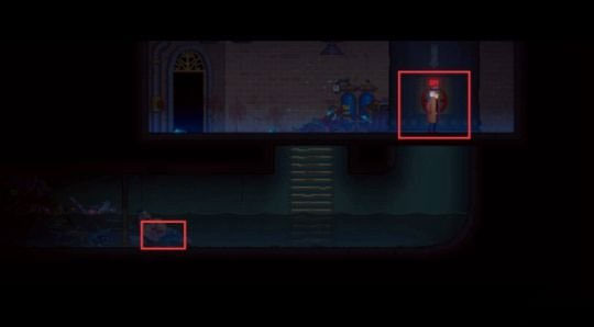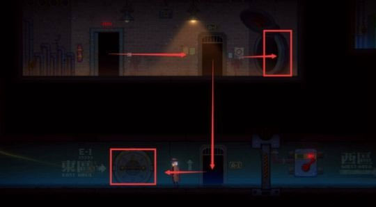 出来后沿箭头往下入去E-1,或者一直往右走进入管道,把升降梯放下,两种方式都能回去。