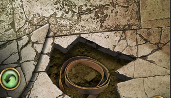 6、在场景25中我们可以捡到一个类似于拐杖一样的木棒,我们再回到场景21中,用得到的木棒撬开长方形的地砖,可以得到一块场景14中那块缺失的地砖。
