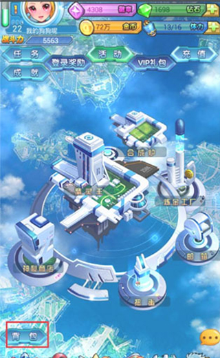 1、玩家登录进入游戏的主页面后就点击左下角的【背包】