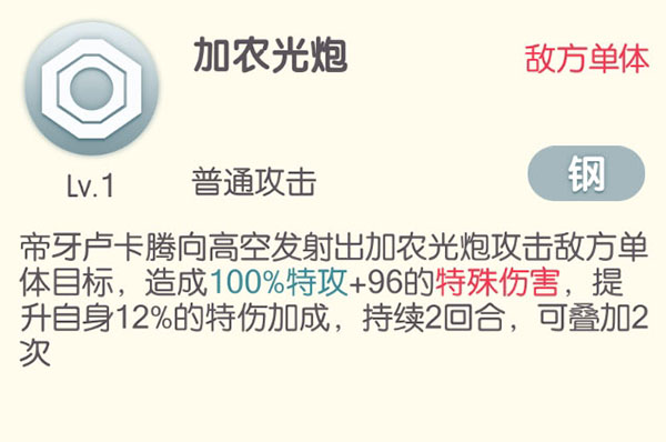 帝牙卢卡的普通攻击,给自己叠加特伤加成,能叠加两次。
