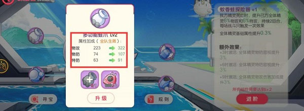 9、探险器的每个部件升级都是全队生效,可以提供不错的战力。