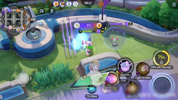 同时游戏玩法类似于英雄联盟手游和王者荣耀,采取了5v5团队作战的方式,但在单局的规则方面有诸多差异。其中最大的不同就是宝可梦大集结的单局是有限时的,地图两侧皆有5个得分点,只要捕捉在场地中出现的野生宝可梦,并带进对手阵营的得分点便可得分,在规定时间内,获得更多分数的一方将获得胜利。