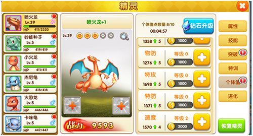 6、精灵:精灵系统包含了精灵成长相关的操作,包括技能的学习、突破、特训、属性提升以及进化,想要让精灵更加强大,九耀通过这里来提升精灵的实力
