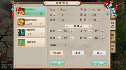 宠物等级提升后,就会得到相应的点数让道友分配属性,各位道友可以根据宠物类型、自己想要宠物发展的路线等等因素,将属性点进行分配。如果后续想要重新分配属性,那么可以点击界面上的“-”号按钮进行洗点。但洗点是需要花费元宝滴,所以在分配属性点的时候,还需要慎重考虑如何分配。