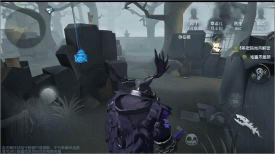 (4)乌鸦报点。当求生者长时间不行动或者经过乌鸦旁边,也会有提示,求生者头上也会出现一群“乌鸦光环”