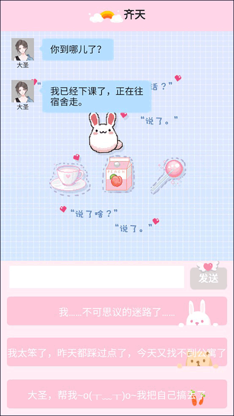 之后我们会收到好朋友大圣发来的信息,这里的选择可以无脑选,聊到最后我们会获得大圣发来的地图。