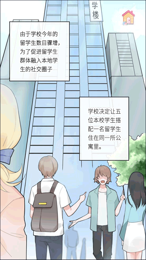 刚开始游戏我们了解到我们需要和同校的4位同学和一位留学生一起住一个公寓。