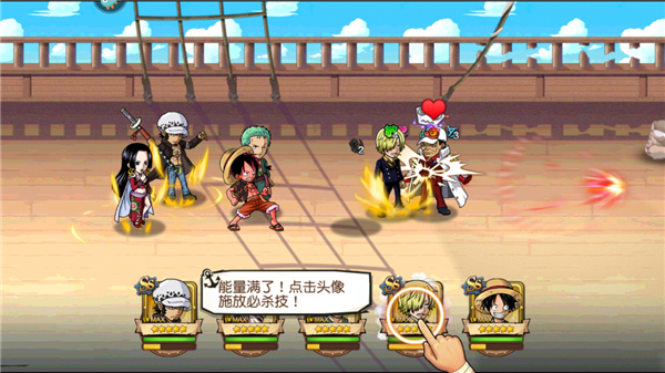 航海王启航是由日本热门动漫正版授权改编一款2D横版动作RPG手游,延续了原著动漫海贼王的基本设计风格,游戏画面十分细腻精致,色彩清新笔触柔和,人物造型采用Q萌的三头身造型设计,角色特点也得到了很大程度的保留。而且游戏中UI界面、功能按钮都和动漫中的人物、场景完美结合,功能UI设计也很完善,玩家能够很清晰明了的找到自己想要的功能按钮位置。