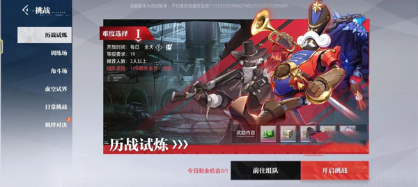 4、历战试炼:这个是游戏中的一个组队团本,需要和四名其他玩家进行组队才能进行挑战。需要注意的一点是每天只有一次获得奖励的机会,因此最好能有一个较为固定的组合,这样才能尽可能拿到全部的奖励。这个副本推荐玩家每天都去完成一下,如果在游戏过程中选择不太配合的队友,那么可以选择离开,这样是不会消耗这惟一的次数的。再有就是推荐四个人组满了再进副本,这样能够得到额外的经验加成。