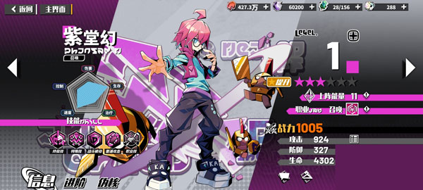 3、同理紫堂幻这个角色也是可以升星达到橙色的角色,碎片的获取和凯莉基本上一样,而且这些角色都有一个特点就是消耗的上场能量少,有时候两个可以抵得上一个天生的橙色角色。