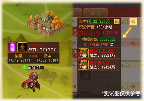 每次移动到达城池时,会获得该城池的驻扎情报,并记录在相应的行军战报中。
