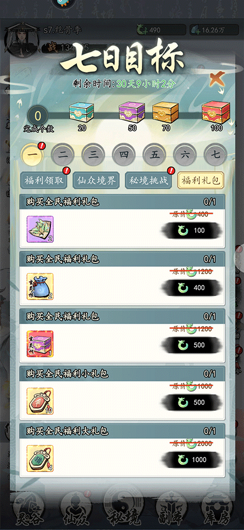 (3)七日目标和冲榜礼包中也有灵药以及材料,要注意购买。