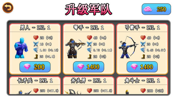 4、闯关胜利后会获得各种钻石奖励,这些奖励可以用于解锁新的兵种。