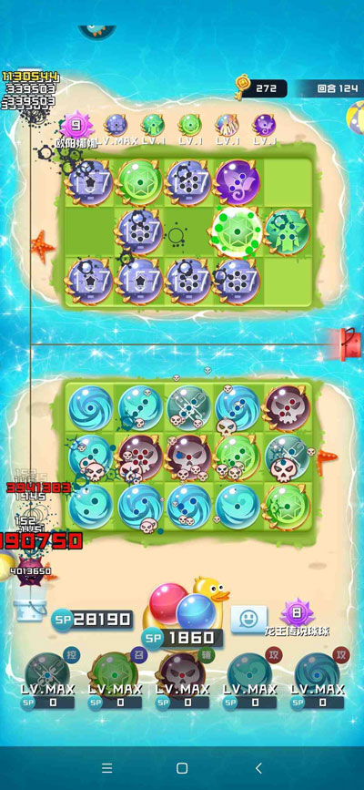 4、当然你需要遇到一个会玩连击的大佬,一般都能刷到100多回合200个金钥匙左右,能开5个箱子还能拿到6000左右的金币,记得金币不要乱花存够38888金币可以在商店买传说球球。