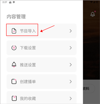 1、打开汽水儿app后,在我的界面点击左上角的设置,点击“节目导入”。