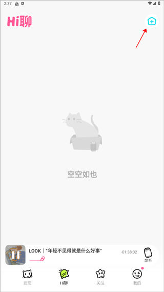 1、打开软件后,在hi聊界面,点击右上角的+号。