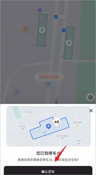 8、然后在手机端点击还车,选择确认还车,