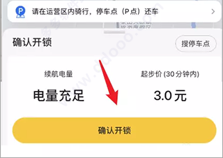 4、对准车辆上方的二维码进行扫描,之后点击【确认开锁】,