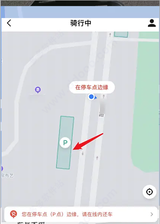 7、显示前往该停车点的路线,根据地图信息,进入停车区域,将美团电动车停放在划线区域,