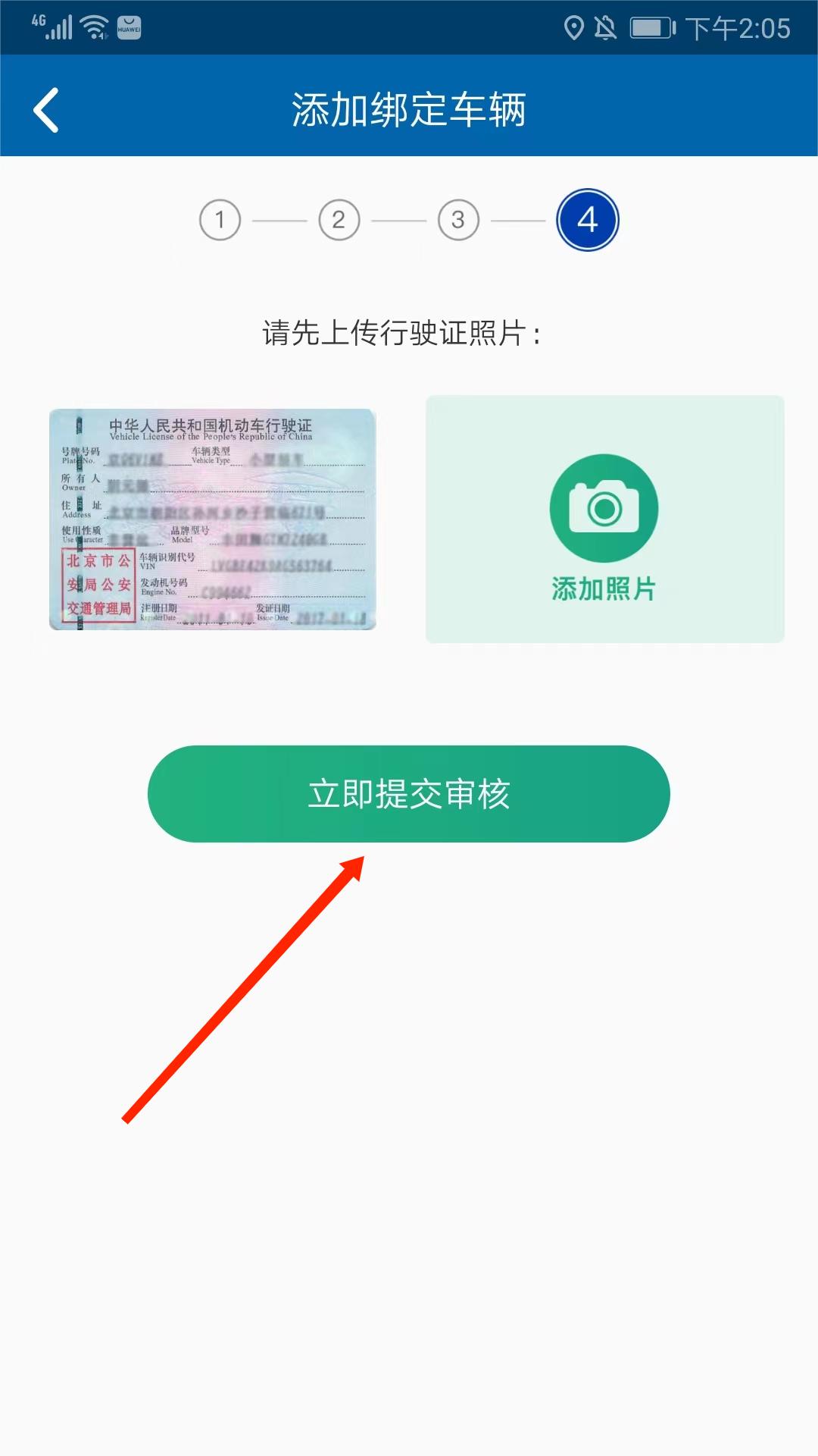 5、按照图示进行上传行驶证照片,选择“立即提交审核”,