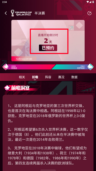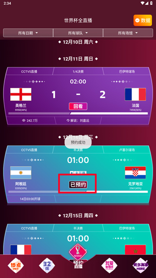 3、点击回看,你可以观看错过的世界杯赛程直播;