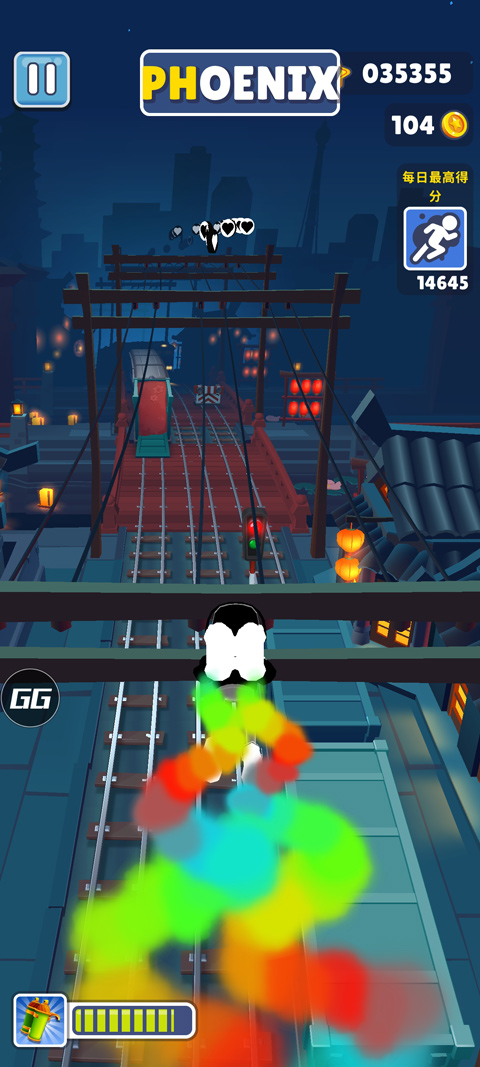4、如果不小心被地铁撞到,或者被保安抓住,则导致游戏结束;