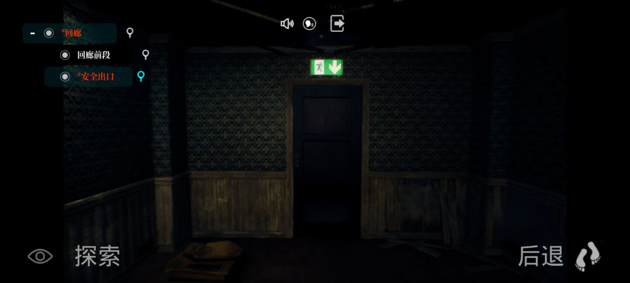 6、来到安全出口这一模式,可以点击左下角的探索也可以点击右下角的后退