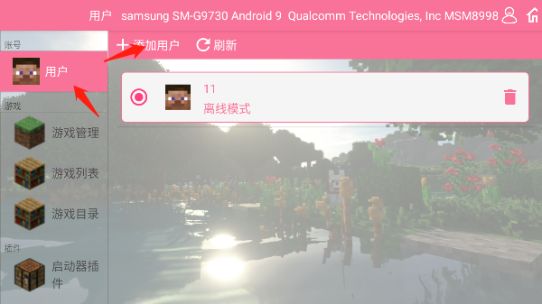 1、下载安装该游戏,如果还没有创建用户就点击用户后点击添加用户。