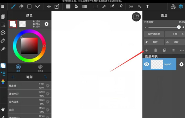 4、然后就进入到了画画的界面,在图层列表上面有个加号(如图)。